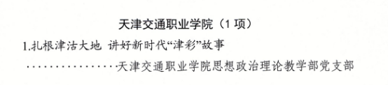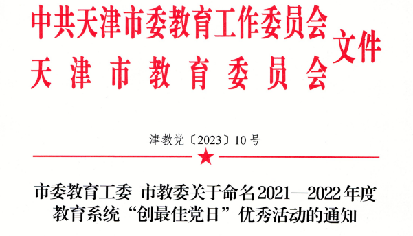 近日,市委教育工委市教委印发《市委教育工委市教委关于命名2021-2022年度教育系统“创最佳党日”优秀活动的通知》,天津交通职业学院思想政治理论教学部党支部“扎根津沽大地讲好新时代‘津彩’故事”主题党日活动被命名为2021-2022年度教育系统“创最佳党日”优秀活动。
