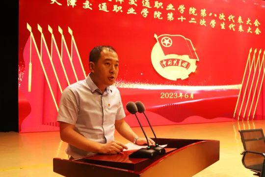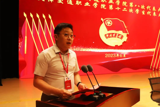 为深入学习贯彻中国共产党第二十次全国代表大会精神、天津市第十二次党代会精神、天津市第十五次团代会精神,认真总结近年来学院共青团工作和学生会工作的主要成绩和基本经验,研究确定今后团学工作的指导思想、奋斗目标和主要任务,激发动力、提升活力,团结带领学院广大团员、青年学生不忘初心、牢记使命,青春建功新时代。2023年6月16日,学院团委组织召开了共青团天津交通职业学院第八次代表大会、天津交通职业学院第十二次学生代表大会。共青团天津市委员会学校部副部长池格、学院党委委员、副院长唐东存、天津市教育委员会直属单位团委书记申宗磊、天津市学生联合会执行主席贺峰出席大会,各有关部门负责人、各分院党支部书记、团总支书记、学生代表参会。