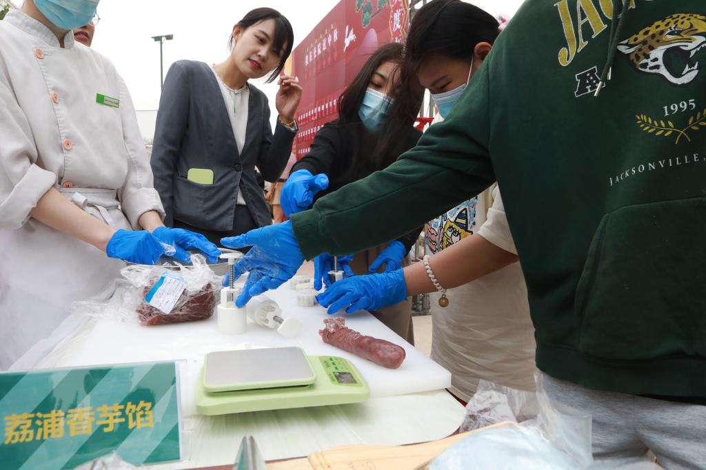 活动中开展了高跷表演、猜灯谜等民俗活动,让同学近距离感受中华传统民俗魅力,增强情感认同,提升民族文化自信。同时,现场还开设了做月饼体验活动,让同学们亲手制作月饼送给自己的亲朋好友、同学老师,感受不一样的“团圆日”。为增强活动互动性,学院还布置了网红拍照打卡景点,让同学拍照分享节日的快乐。“这样过中秋节还是第一次,不但能吃月饼还能做月饼,虽然身在异乡,但感觉非常温暖,是一个不同寻常的团圆日。”阿丽米热·阿不都热扎克同学一边吃着月饼,一边拍照打卡。