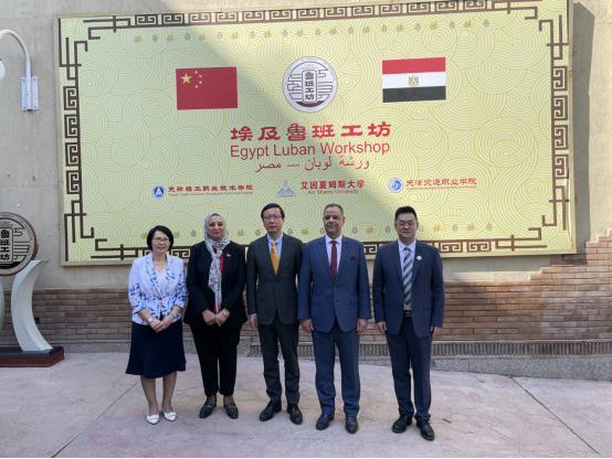 陈杰副部长听取了鲁班工坊品牌核心要义、工程实践创新项目(EPIP)教学模式推广应用、埃及鲁班工坊建设成效等方面介绍,并考察了工坊数控设备应用与维修、新能源应用技术和汽车运用与维修技术等专业实训室。