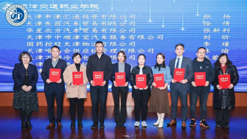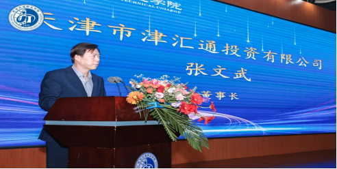 天津市津汇通投资有限公司董事长张文武、天津万疆冷链仓储有限公司副总经理王莹、天津市服装商会会长杨帅、天津中车四方所科技有限公司执行董事王夕生、天津汽车模具股份有限公司总经理助理杨靖伟、天津路驰工程咨询有限公司党支部书记(董事长)庄洪亮,分别作为优秀合作企业代表上台发言。对学院发展提出了殷切的希望。